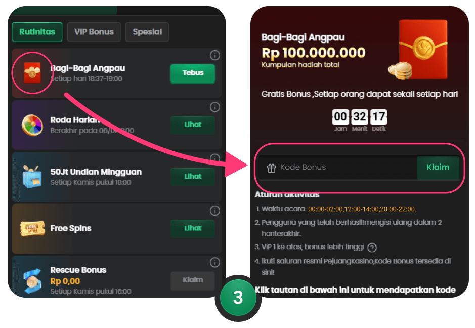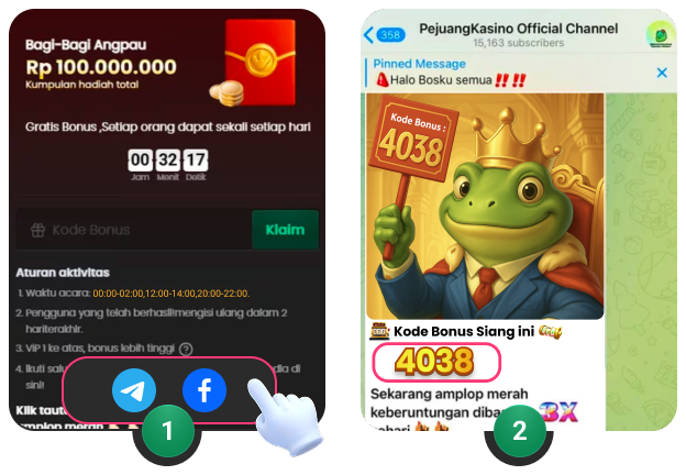 Kode bonus tersedia di sini! Silakan ikuti saluran resmi PejuangKasino karena kami merilis kode bonus setiap hari dalam waktu yang terbatas. Undang teman anda untuk mengikuti dan dapatkan hadiah!